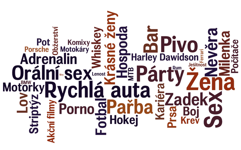 Vysněná dovolená… hory, hory, hory.. ležet v trávě na úbočí, dívat se do údolí hluboko pod sebou a cítit se jak v nebi Třetí rande… přivonět k vlasům, dlouhý polibek a naděje, že to bude pokračovat Oblíbená dětská hra do deseti let… na vojáky Oblíbená místnost… nemám oblíbenou místnost, mám oblíbená místa v místnostech… postel, gauč, vana.. a abych se jen neválel, tak i židle v kuchyni s výhledem z okna Žena… to je tajemství, vzrušení a dobrodružství.. nekonečné objevování a dobývání neznáma Pivo nebo víno… pivo s kamarády na žízeň, víno se ženou na příjemné společné uvolnění Co jsem na ženách nikdy nepochopil. Všechno co na ženách znám chápu, ale pořád je spousta věcí, které jsem na nich ještě nepoznal a těším se až je objevím, abych je mohl více pochopit. Co na ženách zbožňuji. Mohl bych napsat spoustu věcí vytržených z kontextu, třeba jak si přidržují sukni, když si sedají, jak si upravují hlasy, jak při sexu přivírají oči, ale nejlepší je, že prostě jsou a mohu objevovat a poznávat ten nekonečný, neuvěřitelně vzrušující, prostor ženského světa.